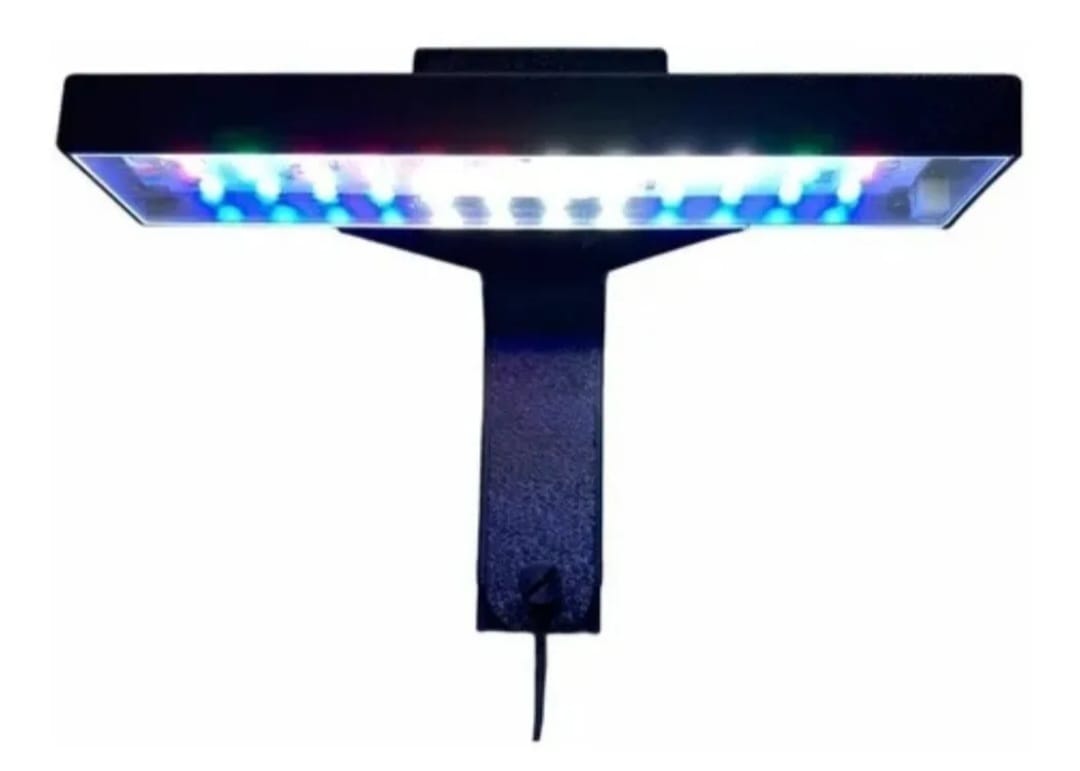 Na distribuição das cores projetamos o que seria necessário para os mais diversos aquários. Leds e placa de alta qualidade. Gabinete em ABS, com encaixe ajustável para vidros de até 6mm, placa totalmente vedada contra umidade. Chaves Liga/Desliga, instaladas na parte superior traseira do gabinete. 3 chaves para o acionamento separado de cada conjunto de cor, podendo assim selecionar as cores desejadas para atender os diferentes horários do dia. Acompanha fonte de alimentação 2,5A, bivolt, com cabo de 1,5 metros, plugue com dois pinos, alta qualidade. Atende aquários de até 45cm x 45 cm.